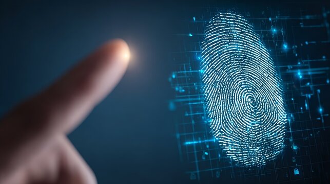 Digital fingerprint technology advancements tech lab infographic high-tech environment close-up view cybersecurity concept