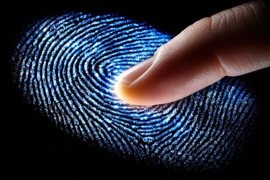 Exploring unique patterns of a fingerprint on a digital interface with glowing details