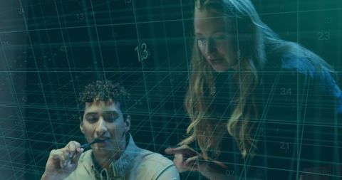 Translucent dna helix twisting across holographic data grid with streaming code overlay