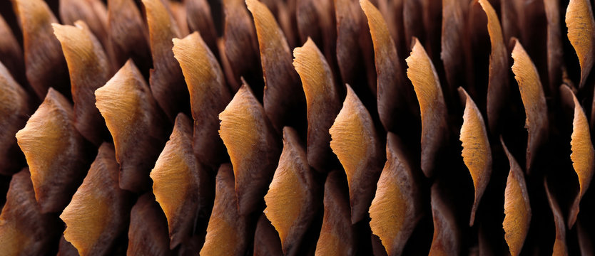 Festive holiday arrangement with fir tree and conifer cone on wooden surface, Christmas decoration