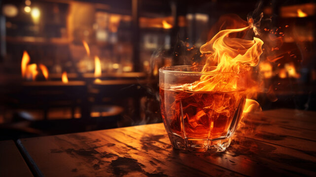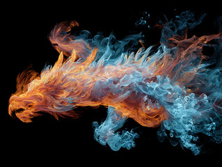 Two vibrant, burning ice cubes on a frozen lake, showcasing a dramatic contrast between fire and ice in a stunning winter landscape.