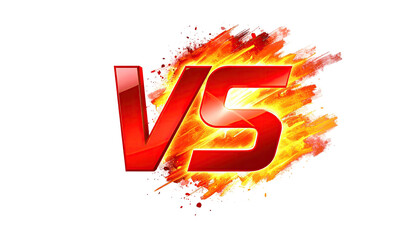 Bold red "VS" letters with fire effect and smoke on a black background