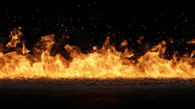 A vibrant, animated flame displays a dynamic flow of fire with sparks, set against a dark background, creating an intense visual contrast.