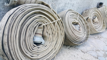looking up view of fire hose standpipe system strategy in stairwell with concrete wall background fire safety efficiency awareness
