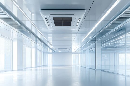 Energy-efficient air conditioning solution delivering cool breeze indoors, complemented by a minimalist backdrop for stylish interiors