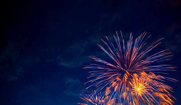 Fireworks display. 4th July fireworks. Fireworks display on dark sky background.