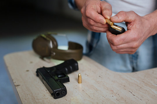 Close up of a bullet being put into the cartridge clip