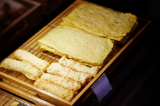 deep fried crispy golden scallops or chicken or fish nugget salad in white black  background dim sum snack halal menu