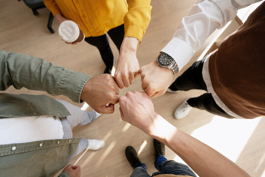 close up. business team putting their fists together