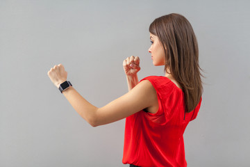 Group of women with raised fists in solidarity, empowerment, or celebration.
