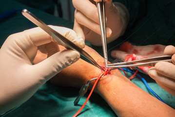 A man's body after kidney transplant surgery, with a fistula on his arm from hemodialysis.