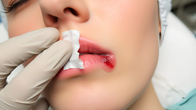 photo from a series: Cosmetology. Complications. fresh plaster on a wound after courting after a fistula curettage on a cheek after removal of badly established non-absorbable thread..