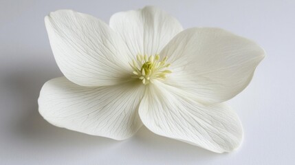 White flower with five petals positioned on vibrant green textured background, emphasizing natural beauty and simplicity.