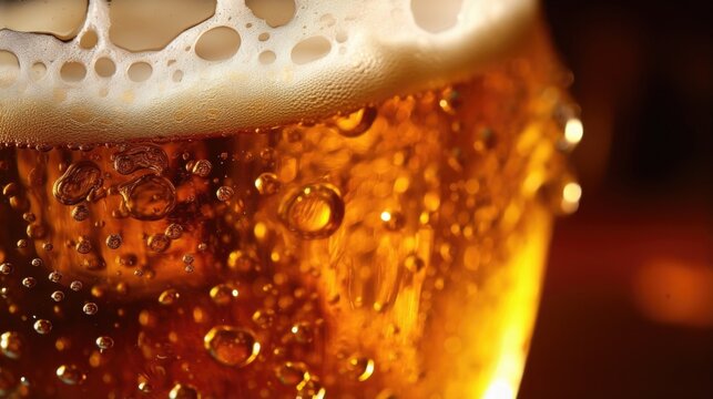 In this detailed closeup, a beer tap is shown pouring its golden contents into a pint glass. The effervescence of the ale is evident, with tiny bubbles fizzing to the surface, promising