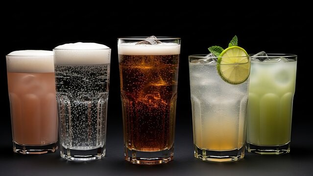 Aromatic chilled cocktail array with refreshing fizz served in elegant glasses
