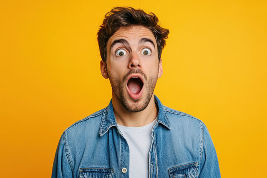 Man, mouth agape, eyes wide in surprise.