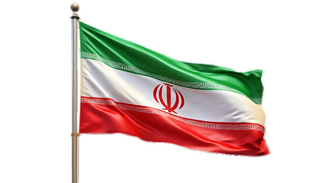 The national flag of iran a tricolor of green white and red stripes proudly waving on a flagpole against a dark background
