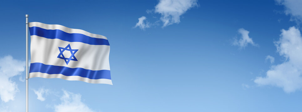 Israeli flag isolated on a blue sky. Horizontal banner