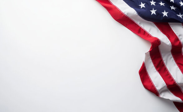 American flag on white background with copy space