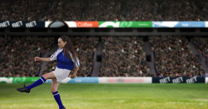 Futuristic digital interface over sports stadium
