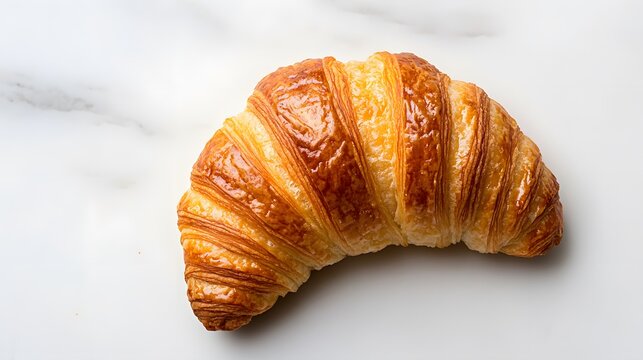 a close-up of a fresh, golden-brown croissant with flaky layers and a buttery aroma on a white isolated background, indulgent and soft design
