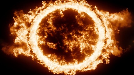Vibrant abstract pattern with flaming shapes and dark sun motif