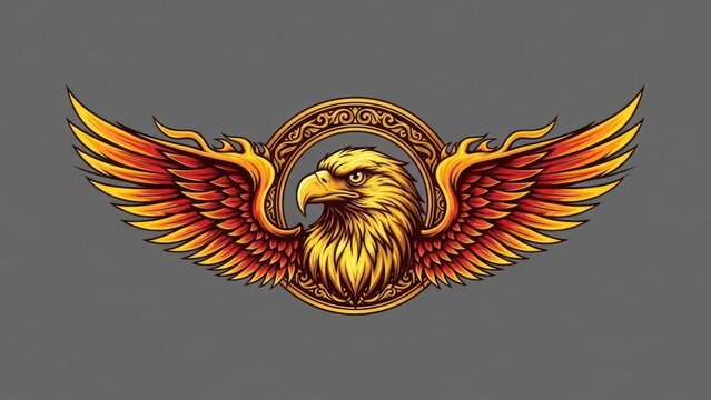 Mythical flaming bird animal soaring among vibrant colorful clouds