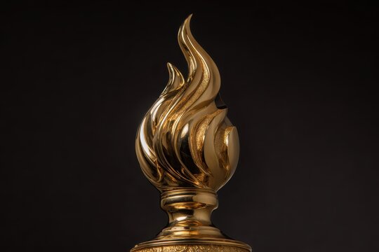 Elegant gold award trophy featuring a flame accent on the side and a gold band at the crown