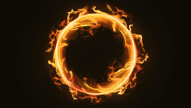 An intense ring of fire swirling against a black background creating a captivating visual effect