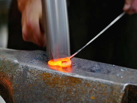 A medieval blacksmith forging a sword in a rustic forge, with glowing embers and tools scattered around. Concept of craftsmanship and medieval trades.