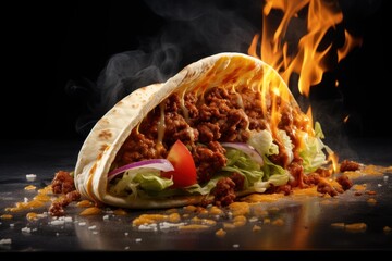 Delicious tacos food photography with fire and spice mexican cuisine meal