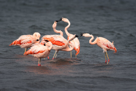 Watercolor illustration set tropical exotic bird pink flamingo. Perfect as background texture, wrapping paper, textile or wallpaper design. Hand drawn isolated bird