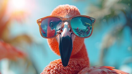 Close-up of pink flamingo bird with pink feathers on dark lake background. Natural beautiful wallpaper with unusual bird. Generative AI professional photo imitation.