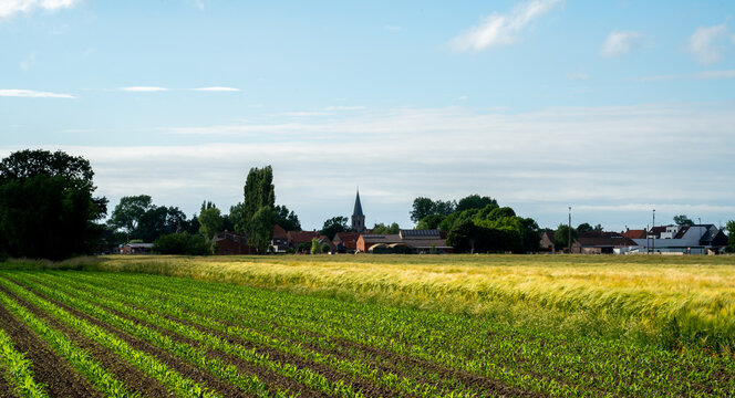 Landscape with Corn and Barley fields in West Flanders, Belgium