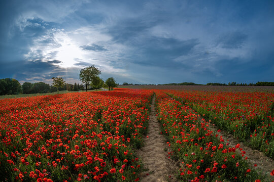 Blooming Flanders Poppies in a meadow