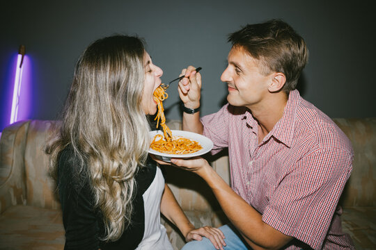 Playful Pasta Moment Between Couple