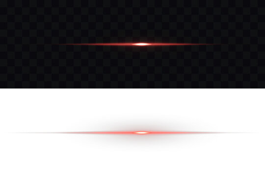 Floodlight directional. Light flare lens effect horizontal, red light beam, glow line rays isolated on dark bg. Lighting effect. Modern overlays and futuristic graphic design accents. Red light beam.