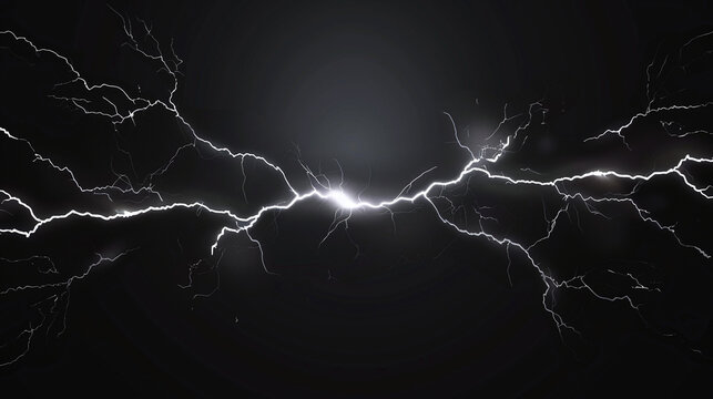 Dramatic lightning bolt piercing night sky with ominous clouds