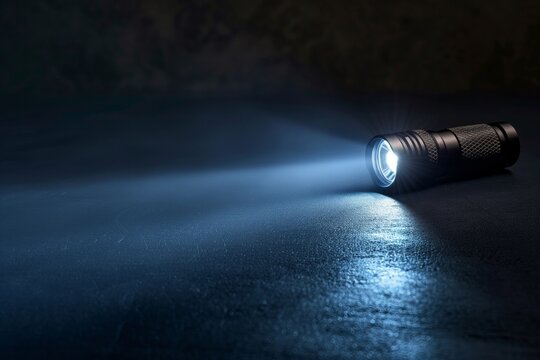 A flashlight illuminating a dark room, creating a focused beam of light in the darkness, perfect for mystery and exploration-themed projects.