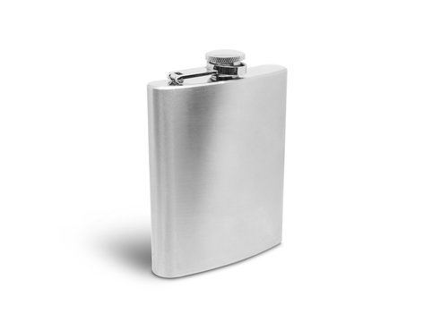Stainless hip flask isolated on white background