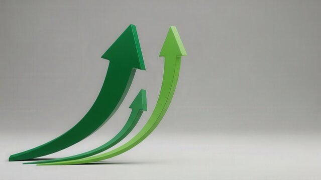 Three vibrant green arrows progress upwards facing horizon continuously