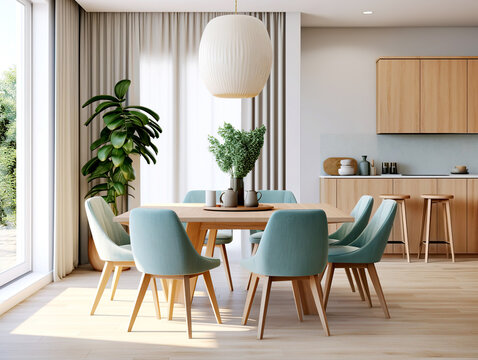 White roman blinds on windows in living room. Sunlight streams through semi-transparent fabric. Modern interior features cosy lounge, comfortable home decor. Classic house design with indoor potted