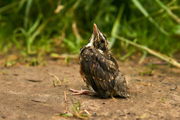 fledgling thrush on stone
