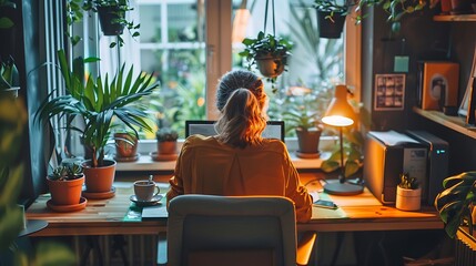remote work at home hybrid work telecommuting teleconference work from anywhere remote office laptop computer woman businessman flex work distributed work webcam conference call coworkers teamwork