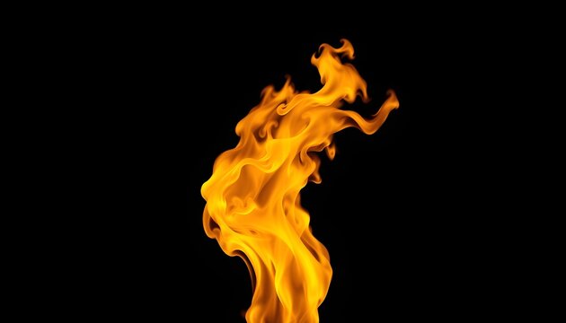 A vivid display of burning flames set against a stark black background, showcasing intense heat and light