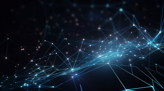 Data technology illustration. Abstract futuristic background. Wave with connecting dots and lines on dark background. Generated AI