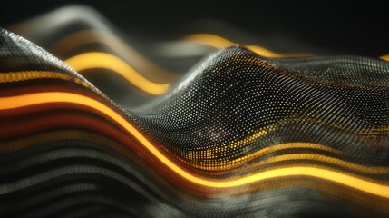 Abstract Digital Wave Pattern with Glowing Lines in Dark Background for Technology and Innovation