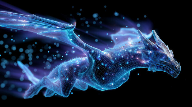 fighter jet in flight from abstract polygonal points blue. Low poly fighter in motion, lines and connected to form