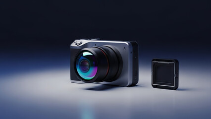 Futuristic digital tunnel with flickering qr codes and neon lights