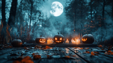 A glowing jack-o’-lantern themed costume with carved pumpkin headpiece, vine-like patterns running across the outfit, and flickering orange light inside